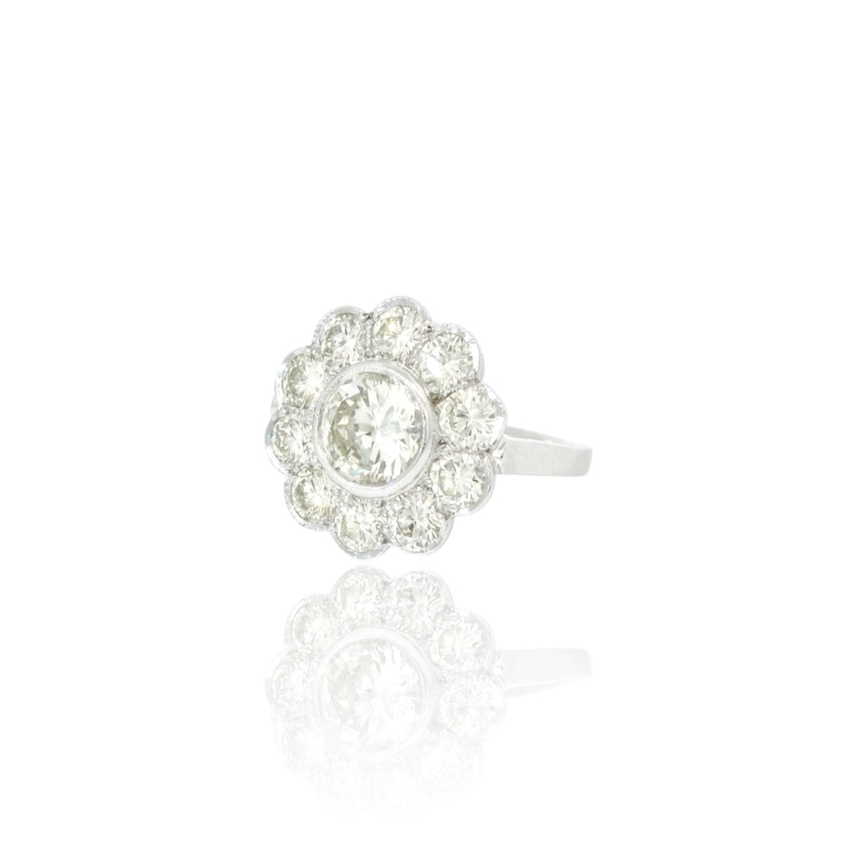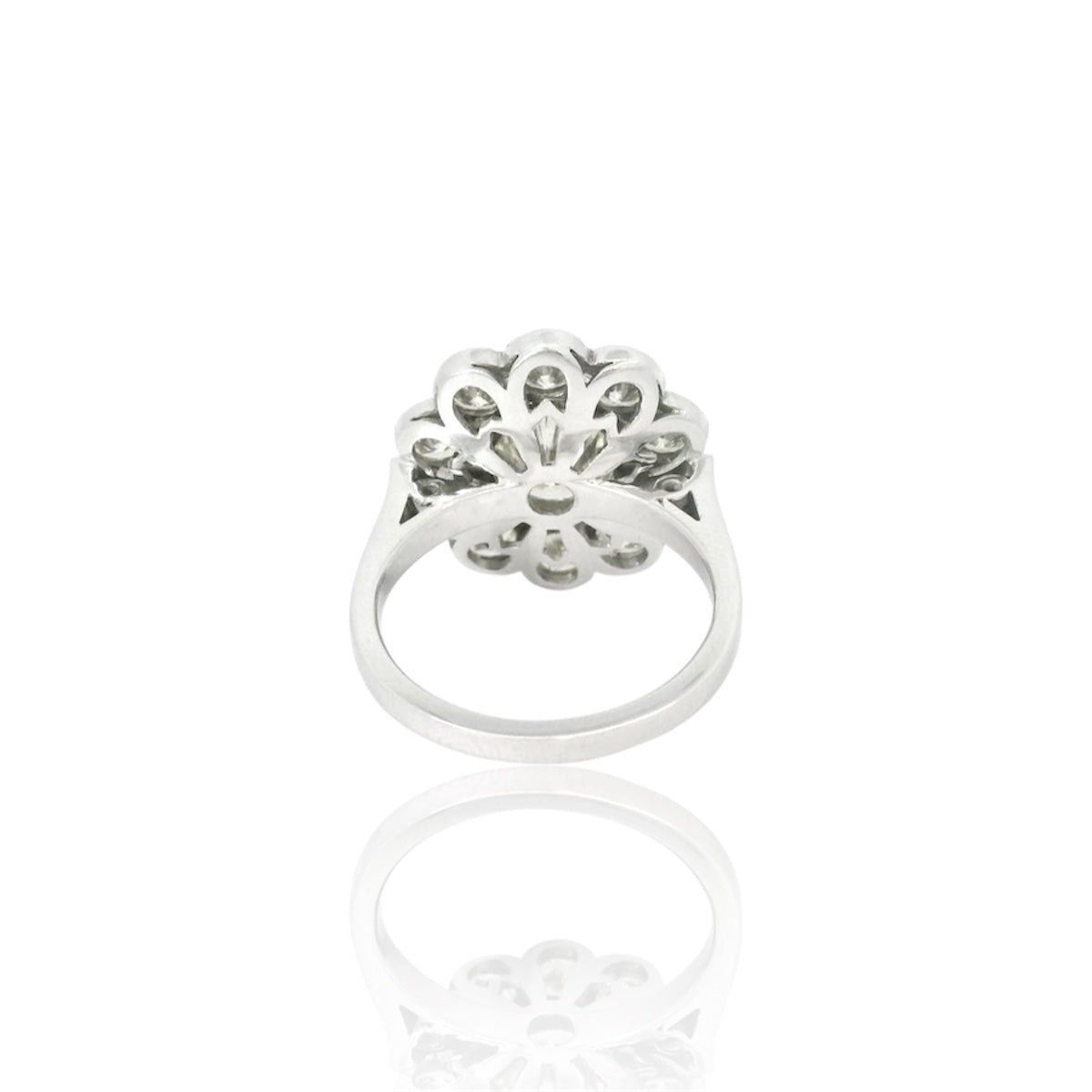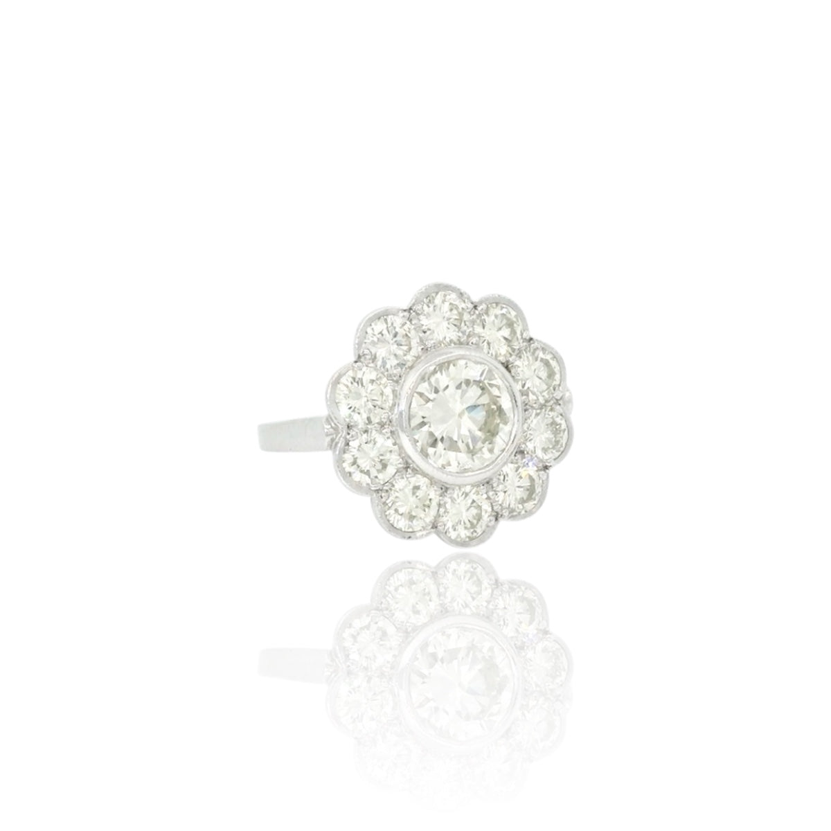 White gold 18K ring set with a center brilliant diamond of 1.65 Carats (estimated I/J color - Vs clarity) and 10 brilliant diamonds for a total of approximately 1.98 Carats (estimated I/J color - Vs/Si clarity).