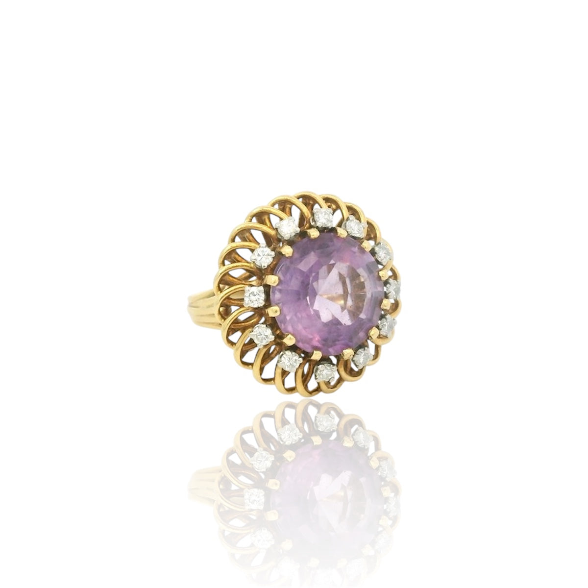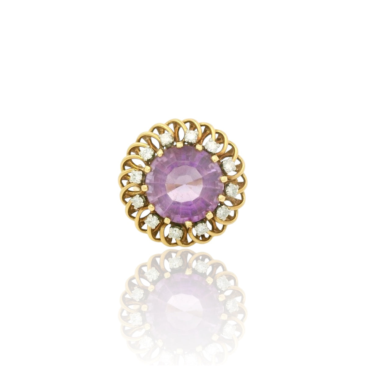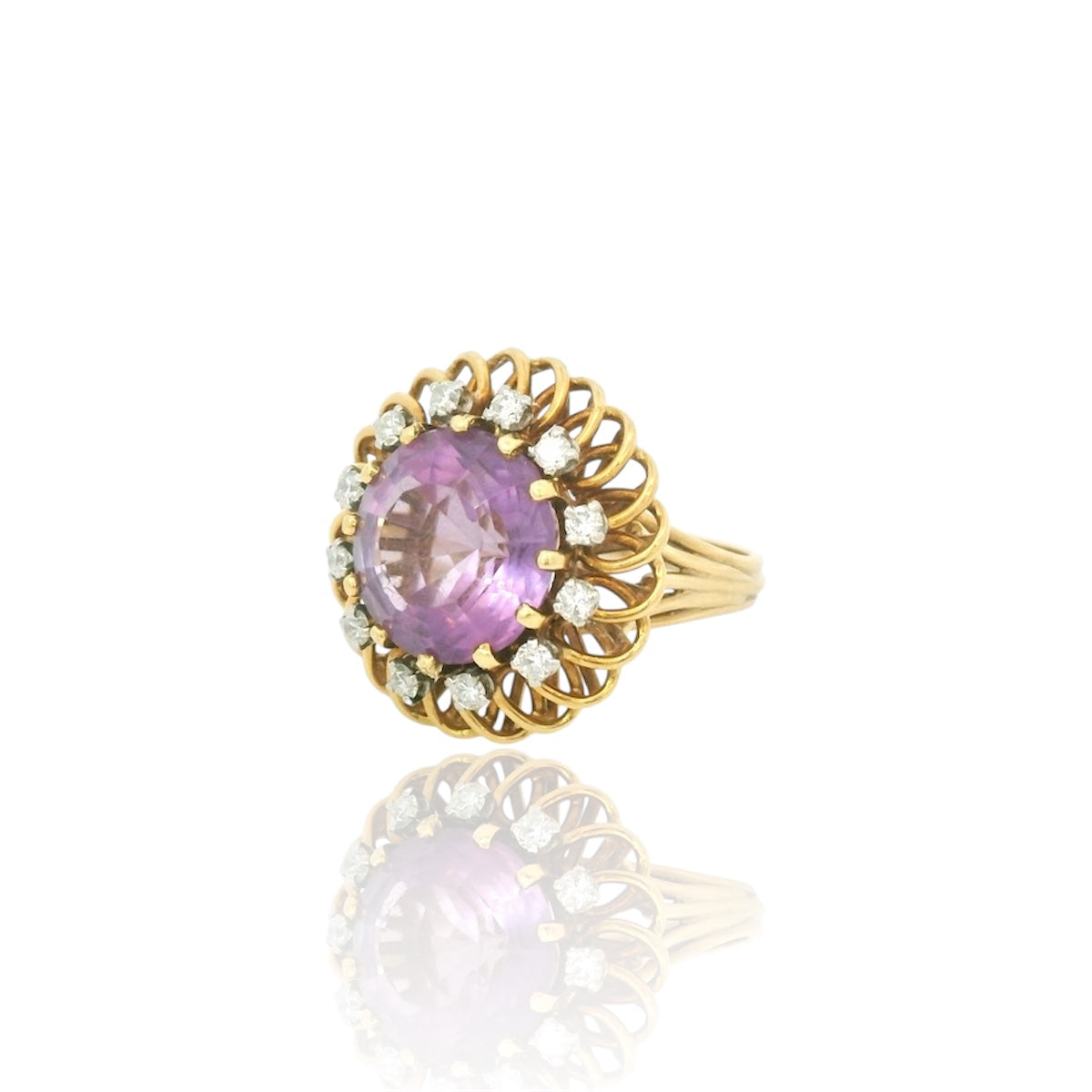 The ring is set with a main Amethyst and 12 brilliant diamonds for a total of approximately 0.50 Carats ( Estimated G/H color - Vs clarity).
